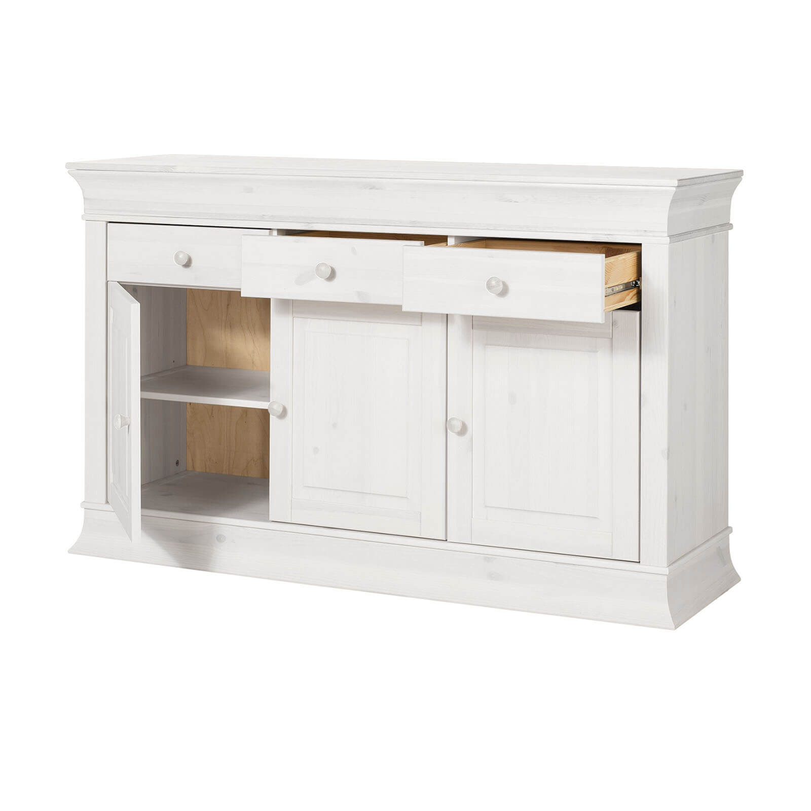 Комод оснащён тремя вместительными ящиками на шариковых направляющих — отличное решение для хранения столовых приборов, текстиля и кухонных принадлежностей.
