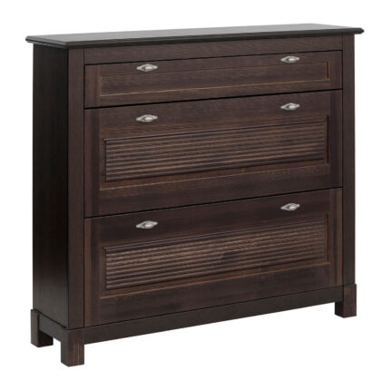 Фасад украшен филёнкой из массива сосны, а фурнитура «под старину» добавляет изысканный акцент.