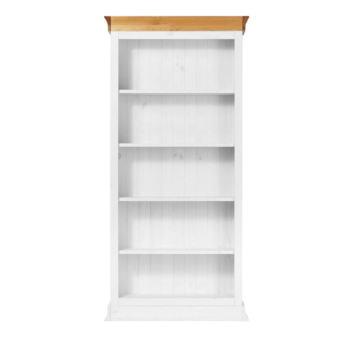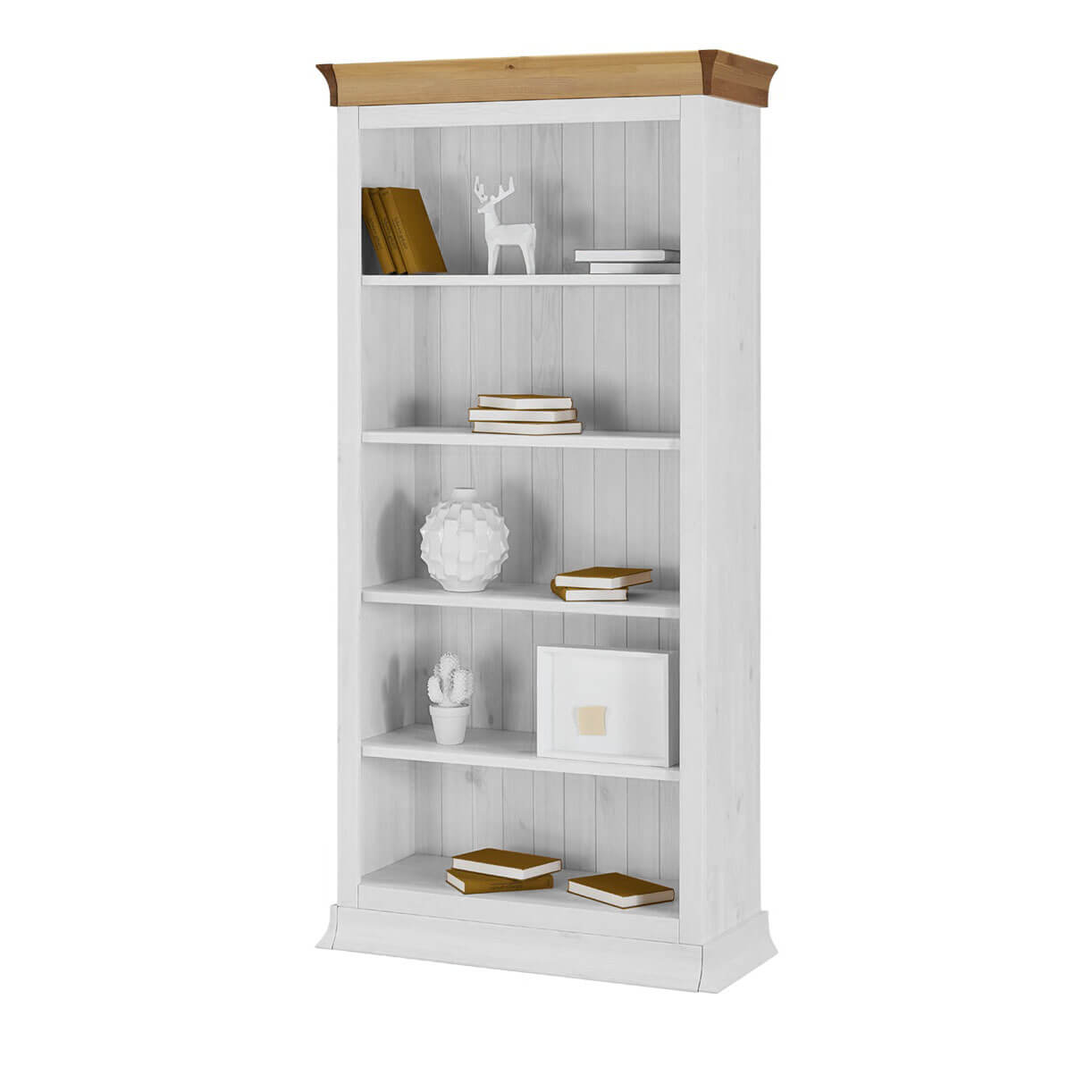 - 4 регулируемые по высоте полки — меняются под формат книг, декора, посуды и даже папок