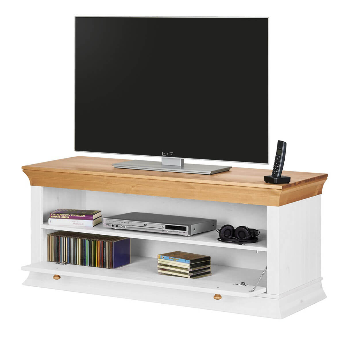Добавьте элегантности и порядка в свою гостиную с ТВ-тумбой из коллекции «Бостон», выполненной из натурального массива сосны.